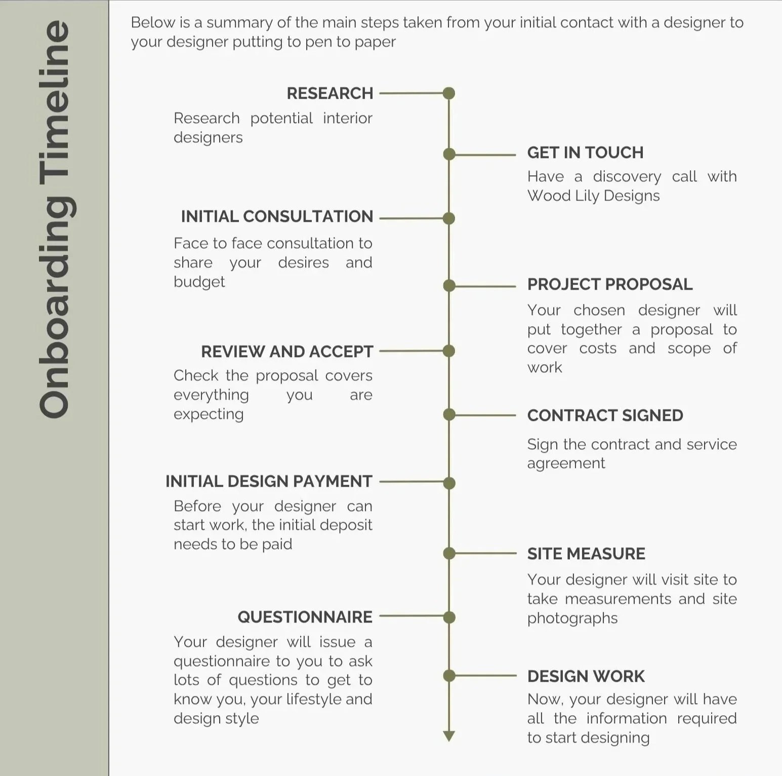 The first phase of design is the onboarding phase. This involves our initial walk through, site measures, and the beginning of the design process.