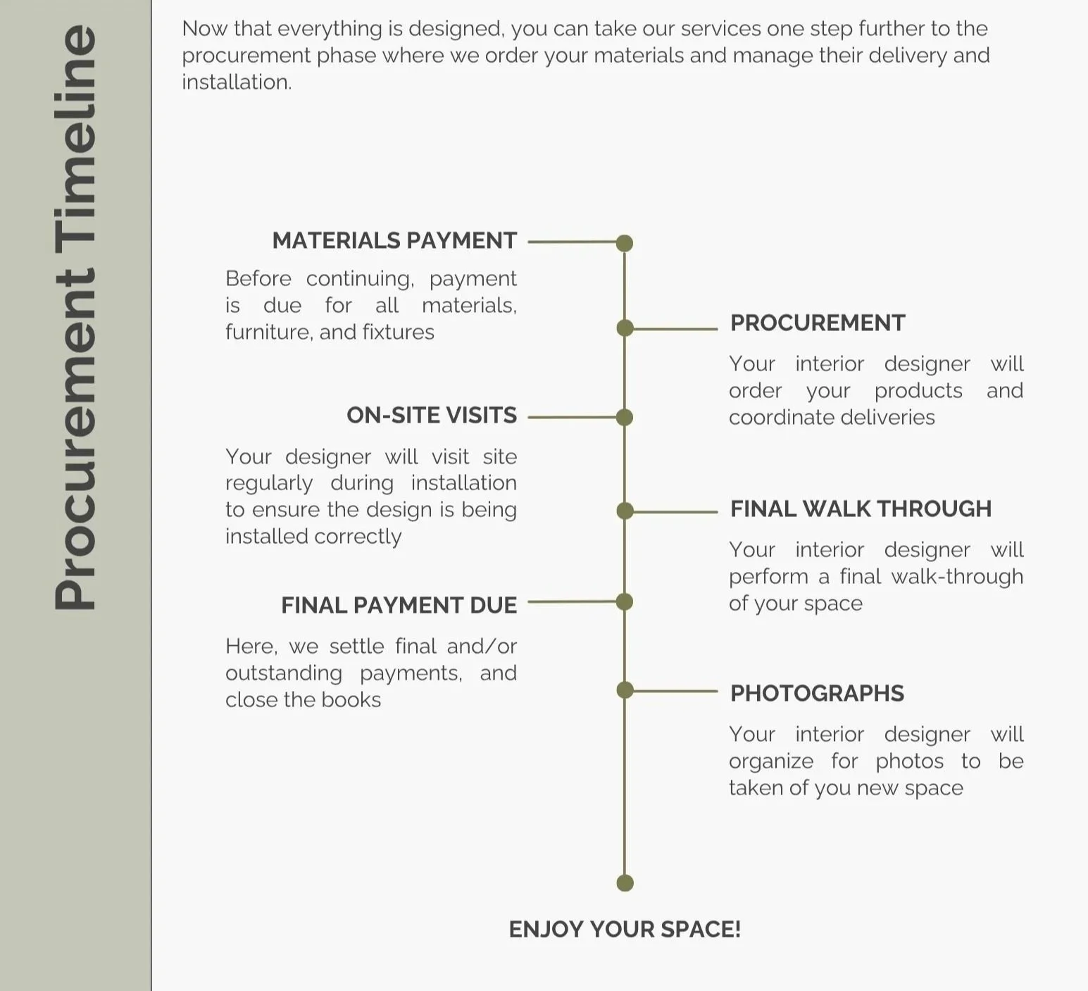 You can take our services on to a third step, where we help you order your materials, manage delivery and installation, and make your space officially complete!
